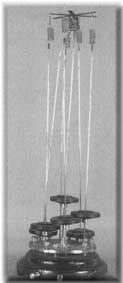Su di un'unica base in ghisa Cancani fece fissare sette pendoli rovesci tipo Cecchi, sei dei quali disposti circolarmente col settimo in posizione centrale. Ogni sottile asta d'acciaio recava, ad altezza variabile, un dischetto metallico fungente da massa; alla sommità di ogni singolo apparato pendolare rovescio era collocata una leggera spirale alla cui estremità libera Cancani, introducendo così una piccola modifica allo strumento del Cecchi, fissò, mediante un filo, un piccolo stilo; il filamento era tanto sottile da reggere appena il peso della asticella metallica, impedendone la caduta. Il pendolo rovescio centrale portava saldato sullo stilo un dischetto di ottone con sei lamine radiali di platino esternamente sagomate a coda di rondine che sfioravano, senza toccarle, le estremità dei sei pendoli rovesci circostanti. Il contatto tra le lamine ed uno qualunque degli stili sommitali chiudeva un circuito elettrico collegato con un apparato registratore; Cancani escogitò un sistema di registrazione su carta di semplicissima complessione, costituito da una striscia di carta Morse che si svolgeva continuamente tramite un meccanismo ad orologeria (Strumenti, sismogrammi..., 1902). Allo scopo di regolare la distanza tra la sommità dei sei pendoli e le lamine centrali, influendo così sulla sensibilità dello strumento, ogni sottile asta portava infisso, ad un centimetro dalla base, il vertice di un triangolo rettangolo isoscele con il cateto di tre centimetri; presso gli altri due vertici passano verticalmente due viti di livello, che poggiando con la loro punta sulla base permettono di regolare ciascun sismoscopio in modo che il rispettivo stilo accosti fino ad un decimo di millimetro dai due lati della rispettiva coda di rondine (Cancani A., 1898).