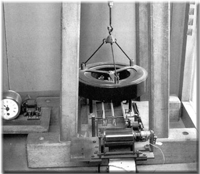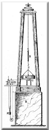 Lo strumento era formato da un telaio di legno a forma di tronco di piramide a base quadrata fissata ad un basamento di pietra o di muratura. Dalla tavola che copre la sommità della struttura piramidale pendeva, attaccata ad un uncino rettificabile, una fune (f) formata da fili di seta alla quale era attaccata una molla a spirale di acciaio (S). Alla fune che proseguiva al di sotto della molla era attaccata una massa anulare di ferro (M) del peso di 10 chilogrammi. La lunghezza totale del pendolo era di 1 metro. Questo sistema di sospensione assicurava alla massa di rimanere stazionaria nello spazio. Per assicurare una riduzione ancora superiore degli effetti degli urti sulla massa in sospensione, la vite di rettifica che si trovava alla sommità del telaio non era direttamente connessa al coperchio ma ad un disco appoggiato alla copertura mediante tre cilindri di sughero.