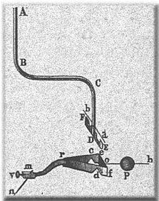 La colonnina che sorreggeva l'apparato pendolare portava alla sommità un comune orologio a sveglia regolato con le lancette sulla posizione delle ore XII. In prossimità della base dell'orologio si trovava una leva metallica a tre bracci. Il primo collegato al meccanismo dell'orologio, il secondo alla forchetta che tratteneva la ventola tramite un filo di seta teso (a) ed il terzo ad un'astina (DE), tramite un secondo filo di seta (b), posta in equilibrio instabile alla sommità di un apparato avvisatore.