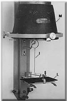 L'estremità superiore del braccio corto si raccordava con la massa pendolare, mentre quella inferiore, al centro del cerchietto, appoggiava in un cappelletto di vetro fissato al supporto. L'ago che costituiva il braccio maggiore si connetteva col sottostante pantografo, di modello semplificato rispetto a quello utilizzato nel microsismografo. L'apparato registratore, comprendeva un leggerissimo tubicino che ruotava attorno ad un perno sul piano di sostegno inferiore: La parte distale del tubicino costituiva uno dei lati maggiori di un rettangolino con gli altri tre lati in lamina d'ottone. I vertici erano forati per permettere di accogliere gli aghi di acciaio che, raccordandoli, ne permettevano lo snodo. Nel foro del vertice prossimale esterno entrava l'ago del braccio lungo della leva verticale, mentre al vertice distale esterno era attaccato, mediante una goccia di cera, un esile filo di vetro atto a lasciare traccia del movimento sulla lastra affumicata. L'intero pantografo era mantenuto orizzontale da un piccolo contrappeso fissato all'estremo opposto del tubicino; l'attrito della punta tracciante sulla lastra veniva regolato attraverso una vite di rettifica posta tra il sostegno e l'asse di rotazione del pantografo. Le proporzioni della leva verticale erano tali da amplificare di dieci volte i movimenti pendolari, mentre il pantografo raddoppiava gli spostamenti della leva dala verticale, cosicché, nel complesso, le oscillazioni pendolari risultavano ingrandite di venti volte.