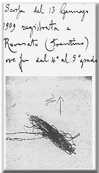 Sismoscopio registratore Vicentini: registrazione di un terremoto del 1909.