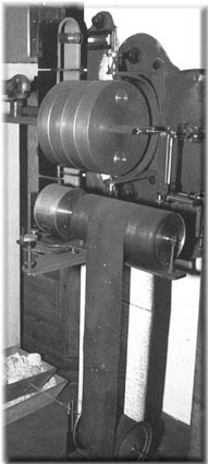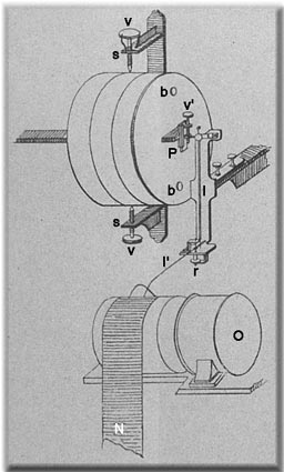 Il nastro di carta affumicata (N), che ruotava intorno ad un tamburo ad asse orizzontale, era messo in movimento da un meccanismo ad orologeria (O) posto sopra una mensola al di sotto dello strumento.