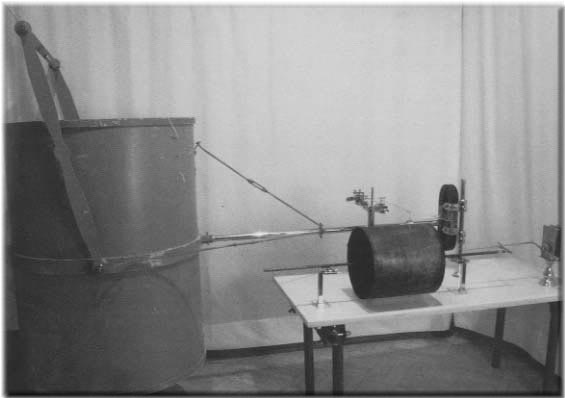 I 1300 kg della massa sono realizzati riempiendo di sabbia il cilindro di lamiera. Lo strumento configurato come a Venegono ha un periodo proprio di circa 11 secondi.