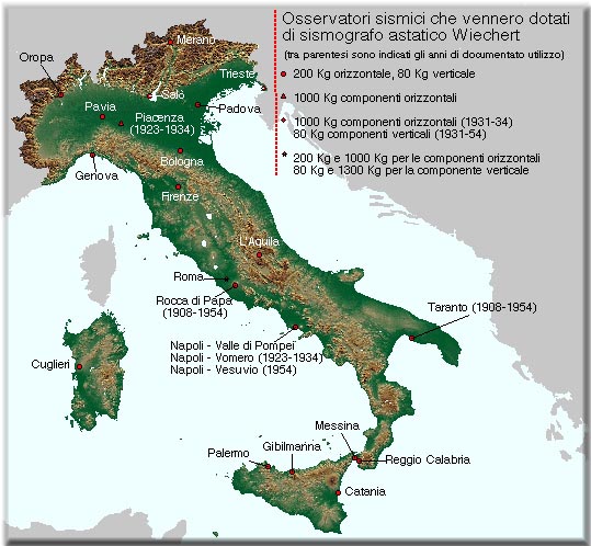 MAPPA DI DISTRIBUZIONE DEL SISMOGRAFO ASTATICO WIECHERT TRA IL 1908 E IL 1954